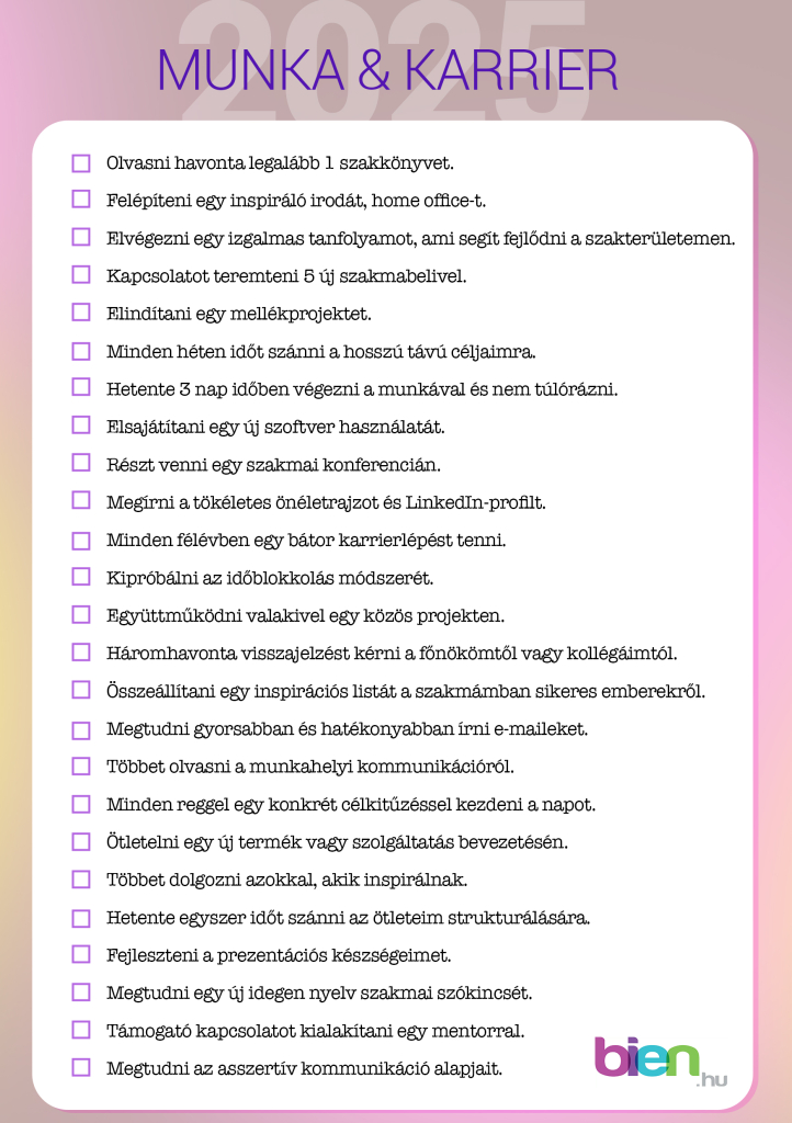 - Összeállítani egy inspirációs listát a szakmámban sikeres emberekről.