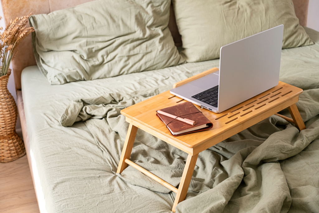 Ahelyett, hogy a laptopot az ágy mellett tartanád, próbáld meg az alvás előtti órákban csökkenteni a képernyőidőt. Ha dolgoznod kell, tedd azt inkább egy másik helyiségben. Ezzel biztosíthatod, hogy az ágyad valóban a pihenés helyszíne maradjon.