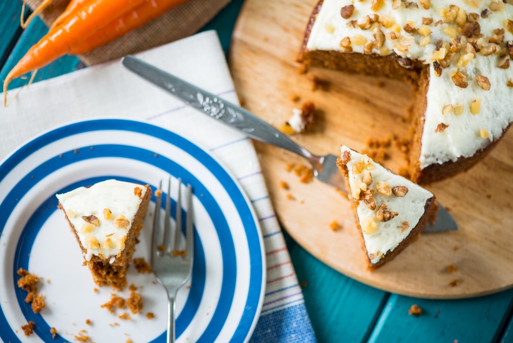 Hozzávalók: 1 csésze kovász, 3/4 csésze olvasztott vaj, 3/4 csésze olvasztott kókuszolaj, 2 és 1/2 csésze tönkölybúza vagy teljes kiőrlésű liszt, 1 és 1/2 csésze nádcukor vagy szukanát, 2 teáskanál vanília kivonat, 3 tojás, 2 csésze finomra reszelt sárgarépa, 2 teáskanál fahéj, 1 teáskanál őrölt szerecsendió, 1/2 teáskanál szegfűszeg, 1/2 teáskanál só, 1 teáskanál szódabikarbóna.