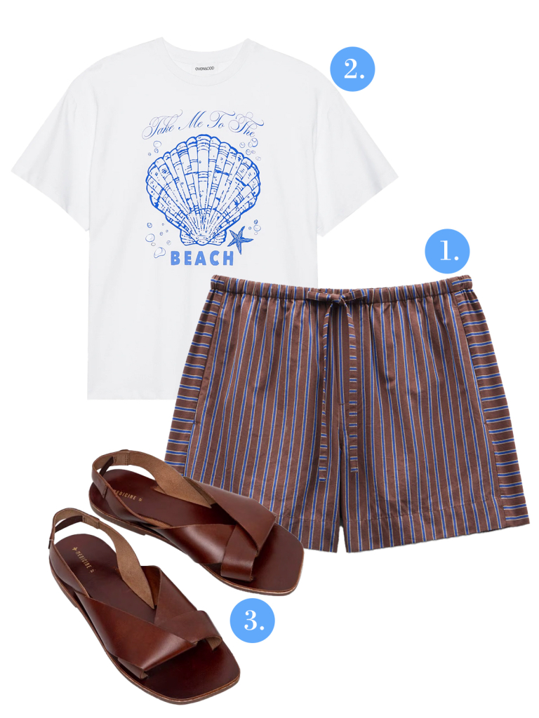 A barna minden árnyalata uralja a nyarat, és tökéletesen működik mintás pólókkal is. Válassz egy laza, barna csíkos boxer sortot, és vegyél fel hozzá egy oversize, nyomott mintás fehér pólót. Hogy az összhatás még vagányabb legyen, válassz egy vastag talpú barna szandált hozzá. Ez a szett tökéletes egy városi kiruccanáshoz vagy laza baráti találkozóhoz.