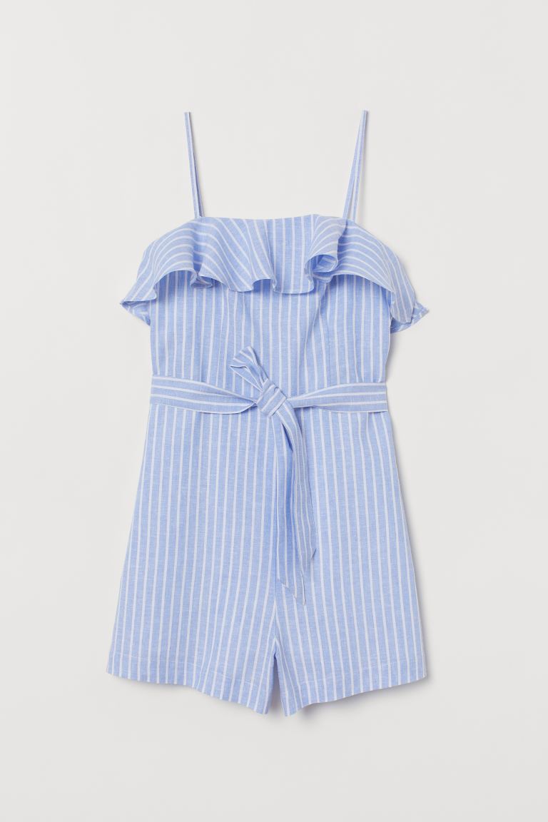 Ez a világoskék, csíkos overál csodásan passzol a nyáresti hangulathoz, de bármelyik kirándulás, városnéző séta során tökéletes társad lehet.