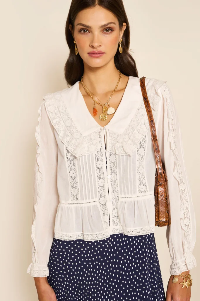 Van valami tagadhatatlan francia báj egy fehér, hímzett blúzban. Talán azért, mert tökéletesen hozza azt a visszafogott, mégis kifinomult hangulatot és épp annyira lezser, hogy ne hasson túlgondoltnak. Farmerrel viselve pont azt az elegáns, de laza egyensúlyt adja, amitől az egész olyan lesz, mintha egy párizsi kávézó teraszáról sétáltál volna ki.