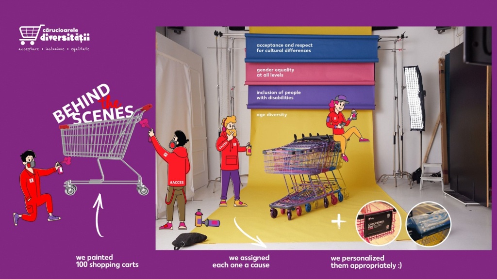 4.) Diversity carts projekt névre hallgató kampányuk során 100 bevásárló kocsit festettek be 4 különböző színnel, amelyek egy-egy fontos üzenetet közvetítettek a sokszínűség jegyében.