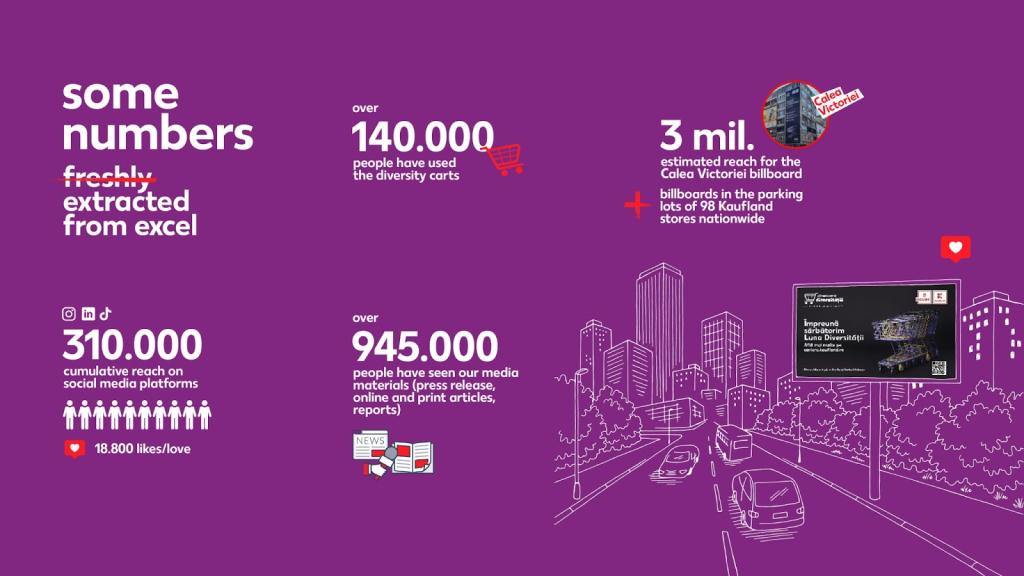 A megértést a bevásárló kocsikon elhelyezett információs táblák, a social oldalakon megjelent kommunikáció és Bukarest legforgalmasabb útján – Calea Victoriei – valamint az országosan 98 Kaufland üzletben és parkolóban kihelyezett óriásplakát segítette.