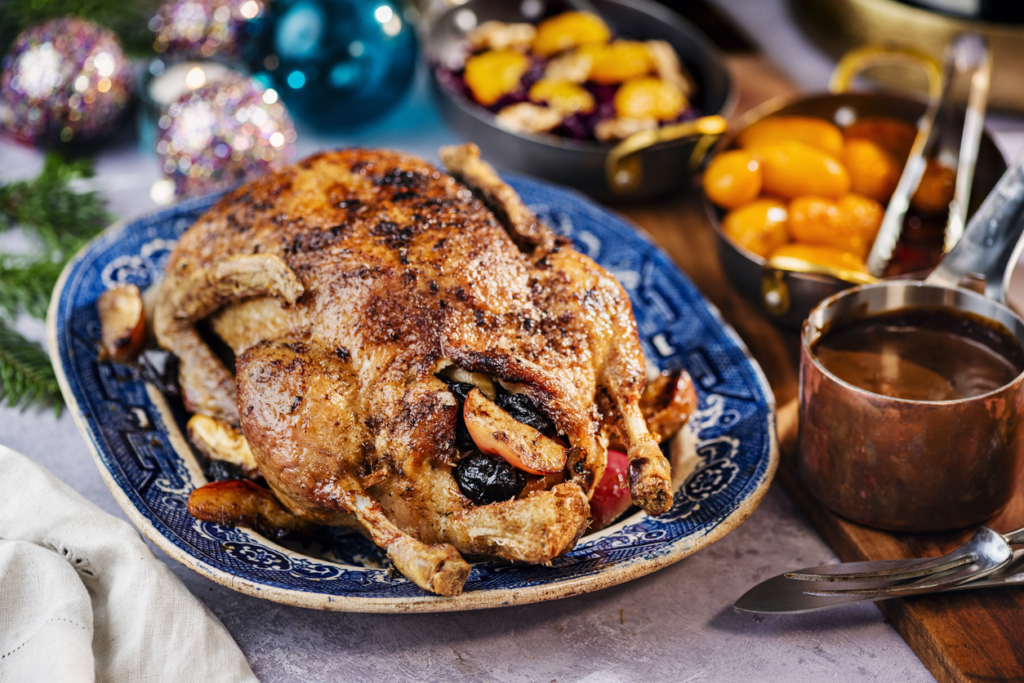 A főételek terén nálunk sokáig a sütőben sült kacsa volt a sztár. Egyszerűen fűszerezem: só, bors és fokhagyma – és hagyom, hogy a sütő varázsoljon. Mellé krémes krumplipüré készül cukormentes mandulatejjel és néha egy kevés margarinnal, hogy igazán selymes legyen az állaga. A párolt lilakáposzta pedig szinte kötelező, nélkülözhetetlen elem.