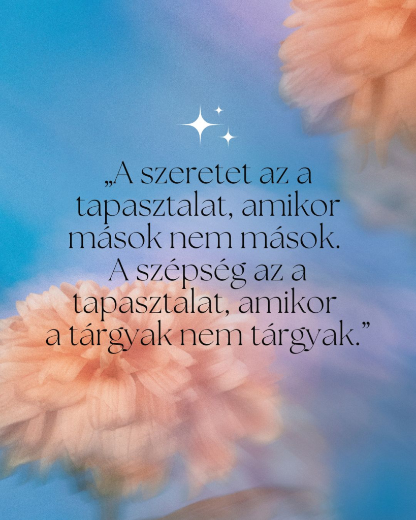 „A szeretet az a tapasztalat, amikor mások nem mások. A szépség az a tapasztalat, amikor a tárgyak nem tárgyak.”