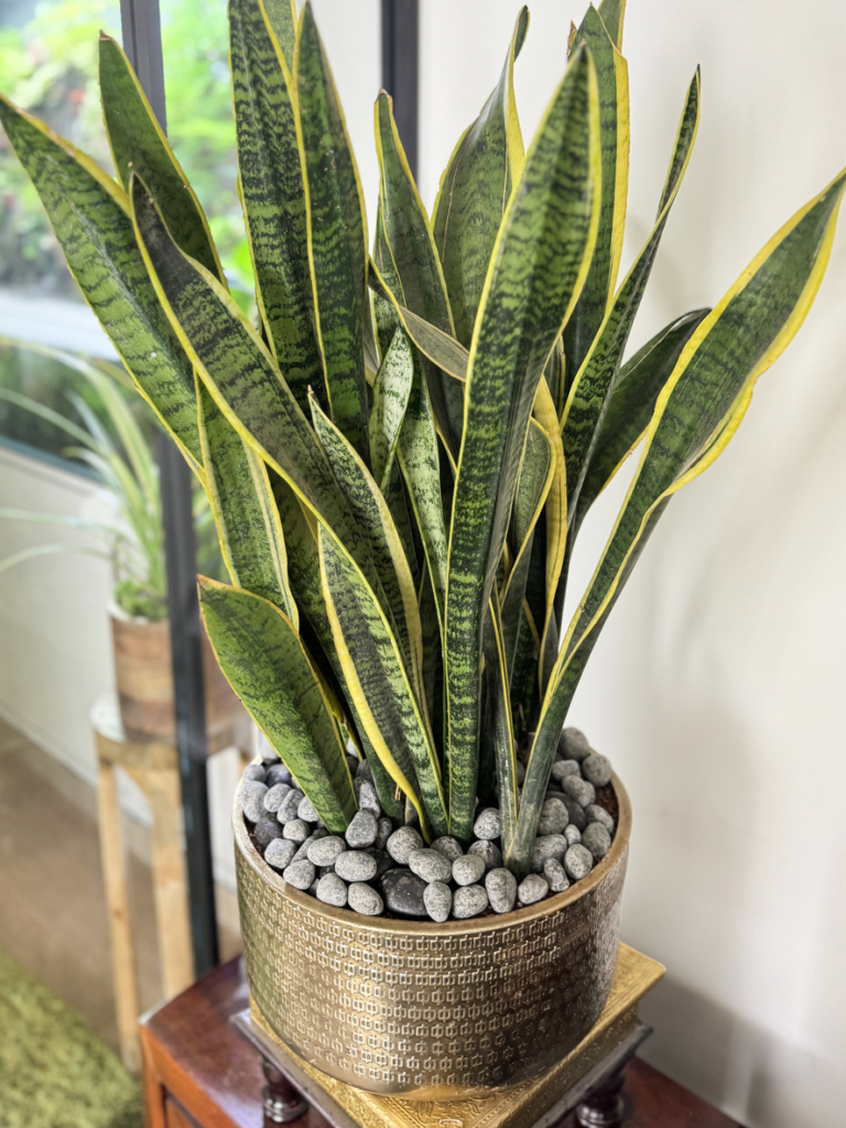 A Sansevieria, más néven anyósnyelv, egy szinte elpusztíthatatlan növény, amely rendkívül jól tolerálja a különböző környezeti feltételeket. Minimalista megjelenése miatt rendkívül népszerű a modern lakásokban.