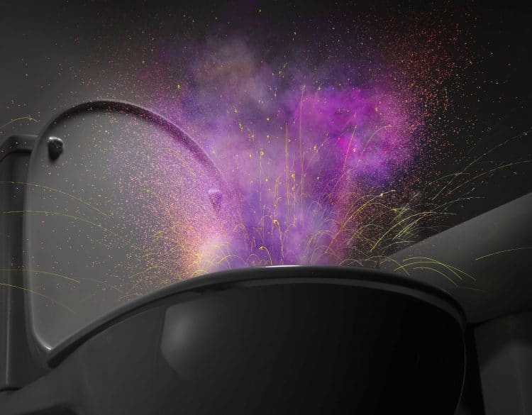 Így rögzíteni tudták az aeroszolokat, tehát a levegőben szálló cseppeket, baktériumokat, amiknek a nyoma nagyszerűen követhetővé vált. A képekből kiderül, hogy a WC-öblítésből származó cseppek nem csak a közeli felületekre jutnak el, így adott esetben a fogkefénkre, törölközőnkre, hanem még a mellékhelyiséget használó emberek arcára is.