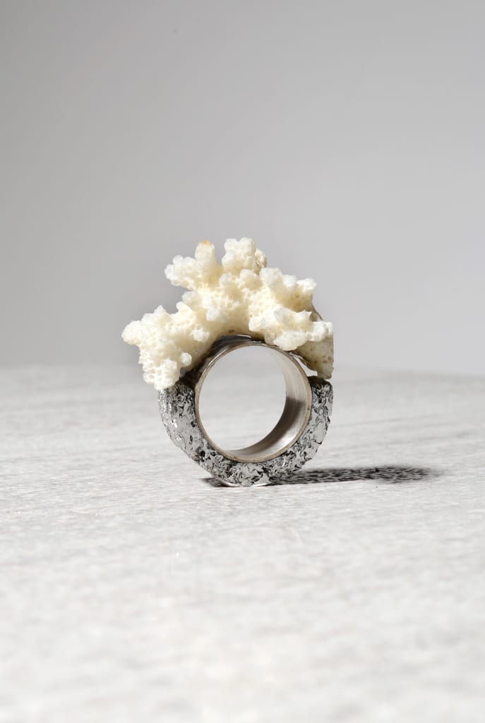 A saját ékszereimnél legtöbbször az alapanyagból szeretek kiindulni a tervezés során, inspirál a kő színe, formája és csillogása, és azon dolgozom, hogy ezeket a tulajdonságokat minél ügyesebben be tudjam mutatni a kész ékszeren, ilyenek például a kristályos fülbevalóim is vagy a korallos gyűrűim. És van olyan is, hogy együtt tervezünk a megrendelőmmel, vagy éppen teljesen kiforrott elképzeléssel érkezik valaki hozzám az egyedi ékszeréhez, ilyenkor visszafogottabban terelem a tervezést, hogy a szakértelmemet felhasználva tényleg olyan tárgy szülessen, amilyet ő elképzelt.