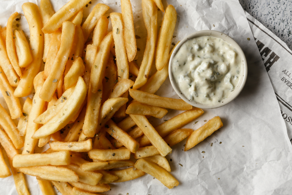1. Vond be olívaolajjal a krumplit: tedd a burgonyahasábokat egy nagy tálba, majd tegyél rá olívaolajat úgy, hogy egyenletes bevonatot képezzen, ezáltal pedig még ropogósabb legyen a külseje.
