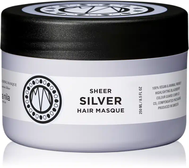 A svéd Maria Nila Sheer Silver hajpakolás kíméletesen semlegesíti a szőke haj sárgás tónusait, miközben egészséges, fényes megjelenést ad. A lila pigmentek mellett a Color Guard Complex védi a hajat az UV-sugárzástól és a kifakulástól, így a szín hosszabb ideig megőrzi frissességét. Krémes textúrája puhává és könnyen kezelhetővé teszi a hajat, mindezt szulfát-, parabén- és állatkísérlet-mentes formulával. 100%-ban vegán, természetes összetevőkkel készült, ezért érzékeny fejbőr esetén is bátran használható.