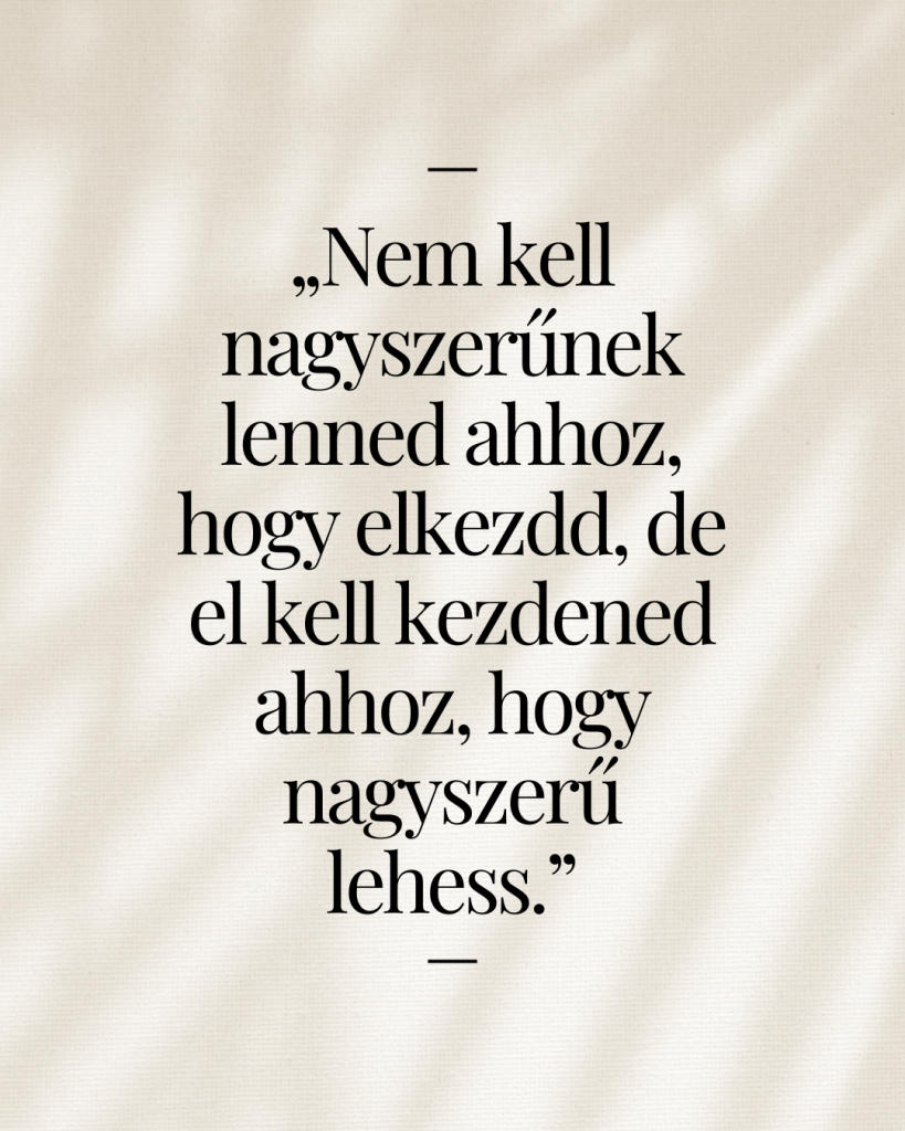 „Nem kell nagyszerűnek lenned ahhoz, hogy elkezdd, de el kell kezdened ahhoz, hogy nagyszerű lehess.”