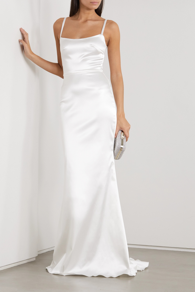 Ez a szaténruha elképesztően elegáns! Lehet, hogy nem habos-babos és nincs díszítve semmivel, de a szabásvonala elképesztően különlegessé teszi.