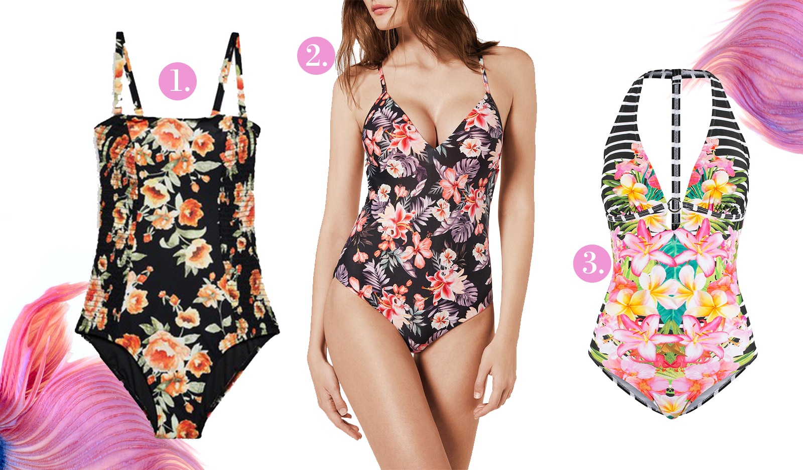 A klasszikus, egyszínű fürdőruhákkal nem lehet melléfogni, főleg nem akkor, ha azok sötét alapszínűek, de természetesen az idei kínálat a mintákban is bővelkedik. Népszerű és kedvelt minta a piros, de kiemelésre méltó a virágminta, ami nem csak a gardróbunk darabjait hódította meg, a fürdőruhák közé is beférkőzött. A trópusi virágok, levelek különösen népszerűnek számítanak: akár a fürdőruha egészét, akár csak egy részét borítják az egzotikus minták, egy ilyen darabbal idén nem lehet hibázni.