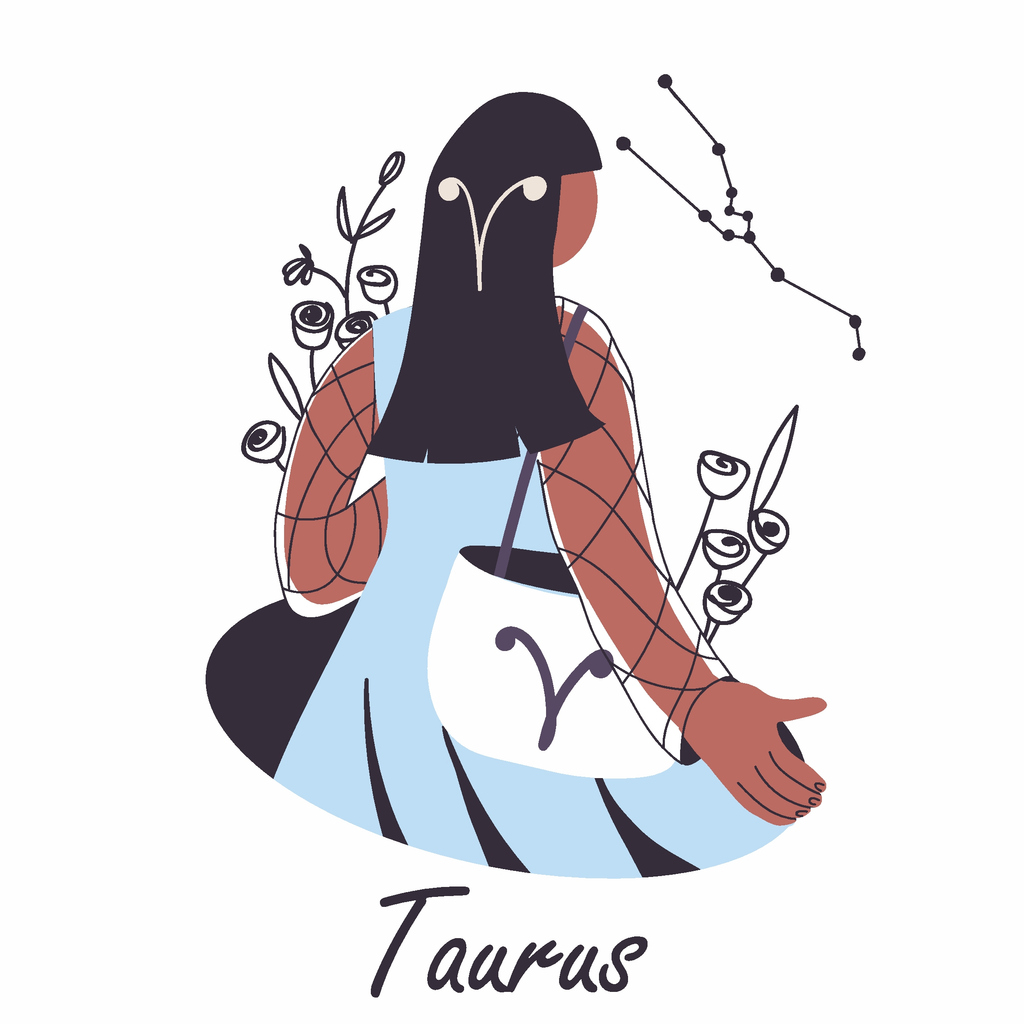 Woman Taurus, zodiac sign, modern girl character. Astrological avatar, horoscope symbol. Trendy person, girl, astrology constellation. Flat vector illustration isolated on white background
