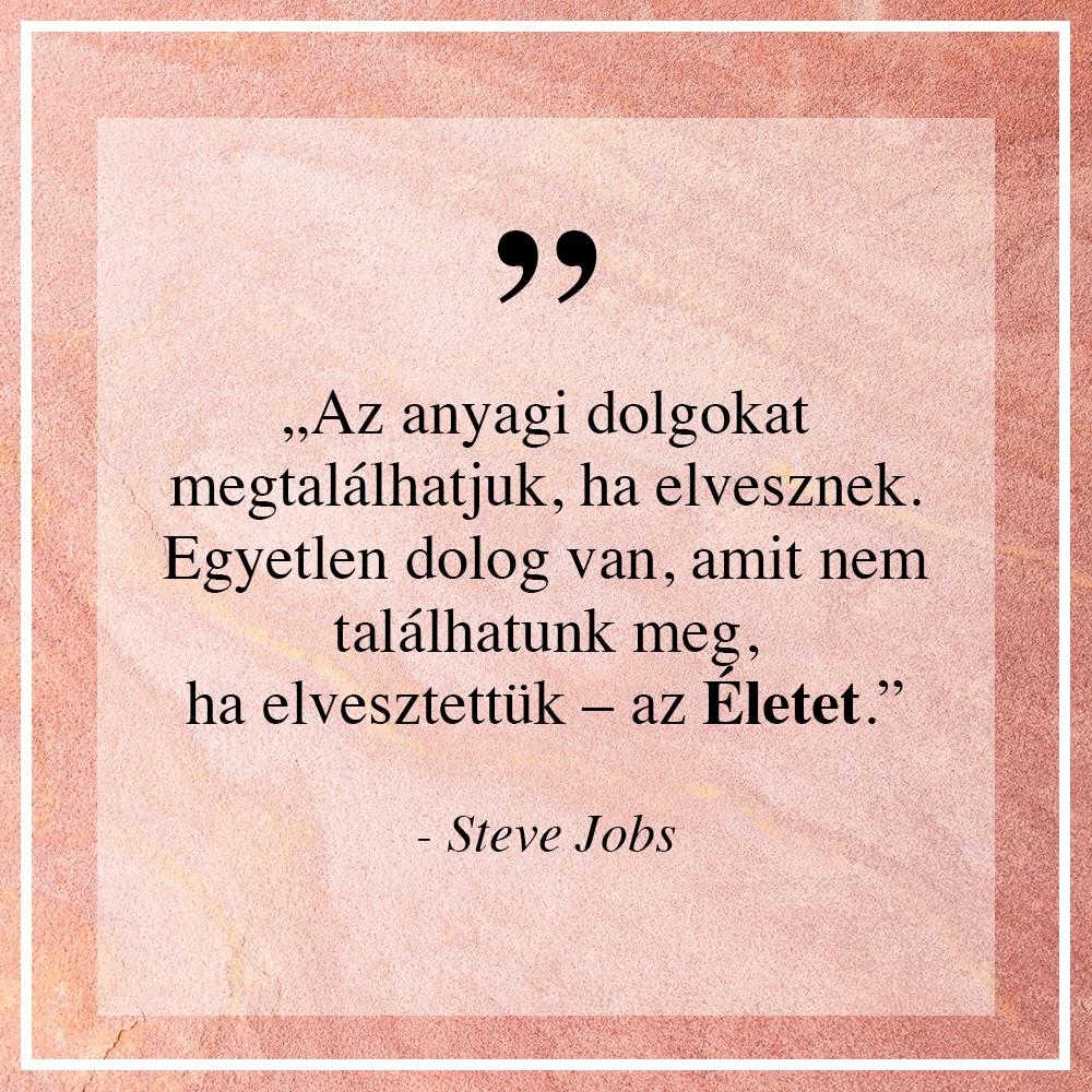 „Az anyagi dolgokat megtalálhatjuk, ha elvesznek. Egyetlen dolog van, amit nem találhatunk meg, ha elvesztettük – az Életet.”