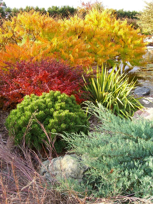 A vérborbolya, a kínai terülő boróka igazán ütős kombinációt alkotnak, ha hidegtűrő, ugyanakkor látványos növényeket szeretnél ültetni. Az ecetszömörce aranysárga lombozatával párosítva a kerted garantáltan nem marad észrevétlen! Ez az összeállítás magával ragadó összképet garantál és tökéletes választás a hűvösebb éghajlatokra, fagyzugos részekre, hiszen mindegyik növény jól bírja a hidegebb időjárást – segítségükkel még tovább élvezheted a kerted szépségét!